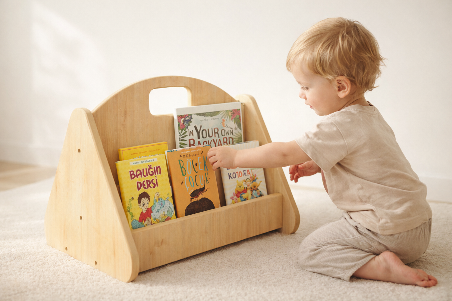 sayesinde çocuğun kitaplarla güvenli ve gerçek bir ilişki kurmasını destekler. Plastik oyuncak hissinden uzak, yaşamın içinden bir öğrenme alanı sunar.