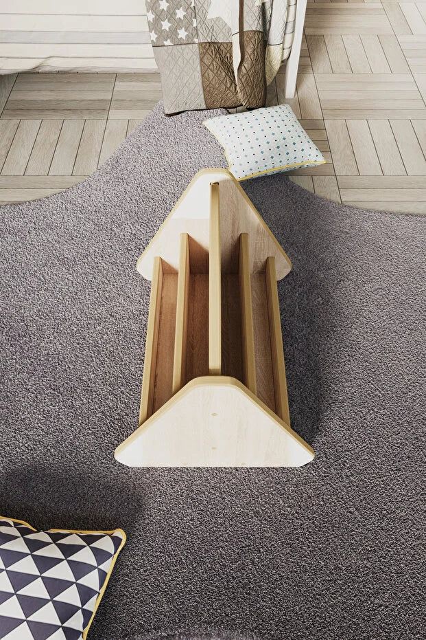 Montessori felsefesi, çocuğun çevresiyle gerçek ve doğal materyaller üzerinden bağ kurmasını savunur. Kavak MDF'den üretilen bu kitaplık;